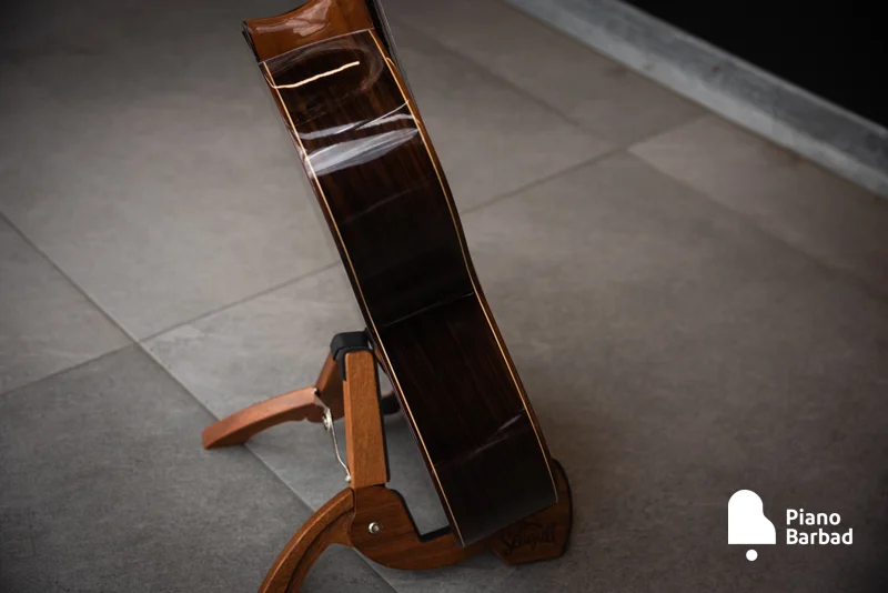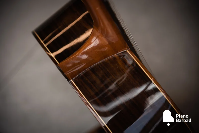 | پشت و کنارهها | چوب رزوود هندی لمینتشده (Laminated Indian Rosewood) – استحکام و زیبایی بالا |